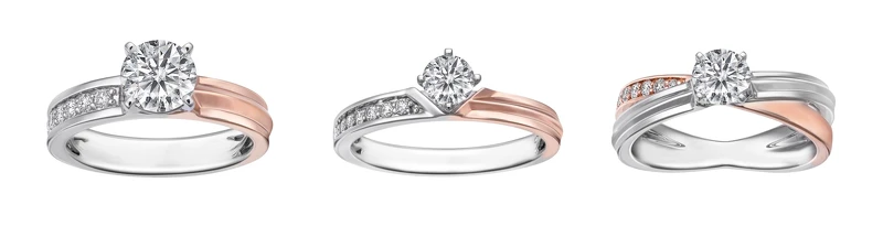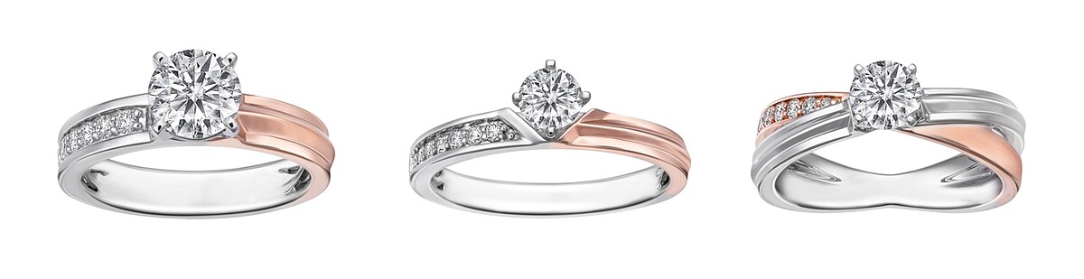 雋永系列的求婚鑽戒,戒圈獨特雙金色調,搭配多種線條設計風格,以及主鑽不同的鑲嵌方式…等組合,讓人可以依照個人喜好、能彰顯纖纖玉指線條的特點,去挑選出專屬自己命定鑽戒款的雋永系列。