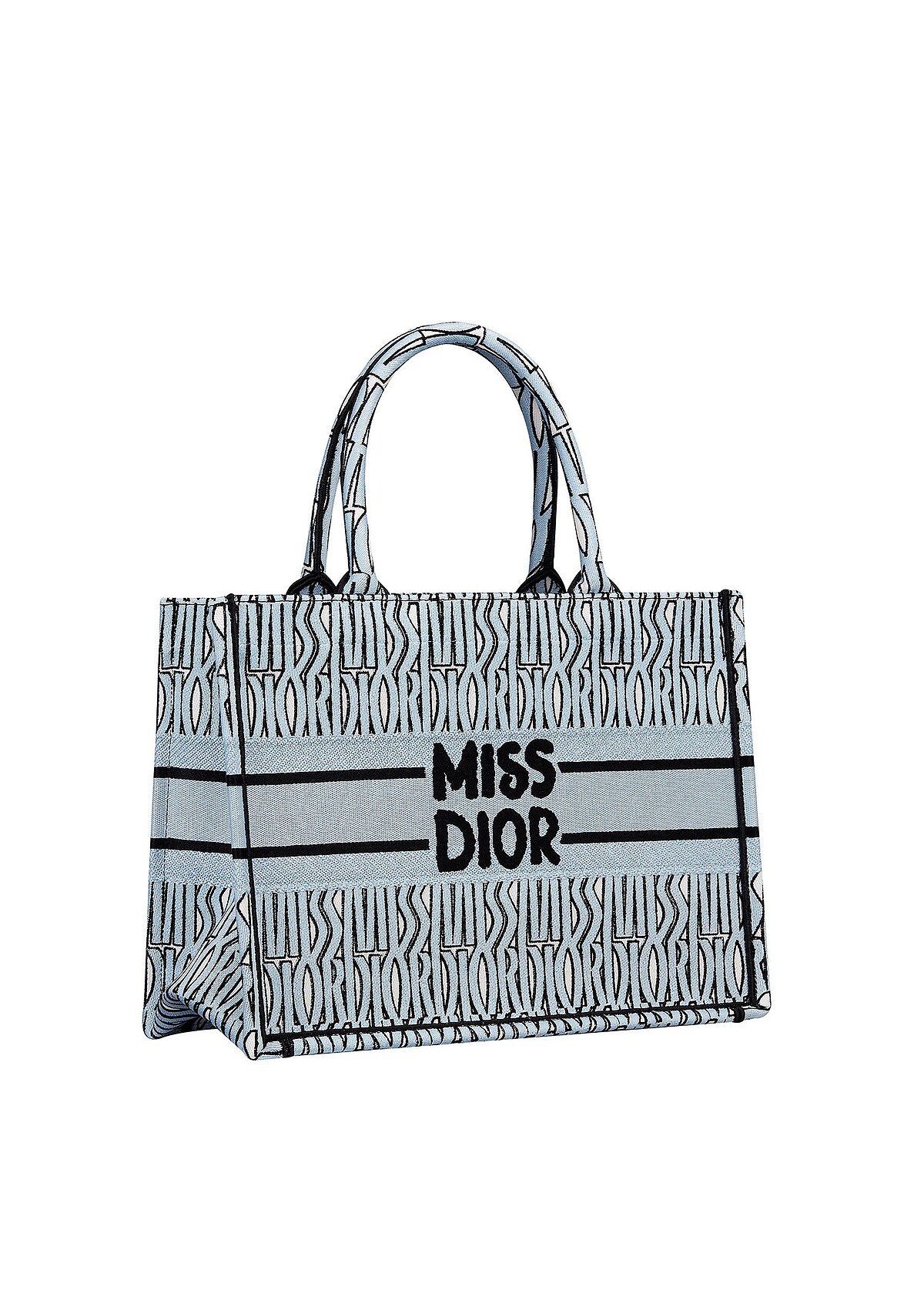 天藍色 MISS DIOR ALLOVER 字樣刺繡中型托特包。
