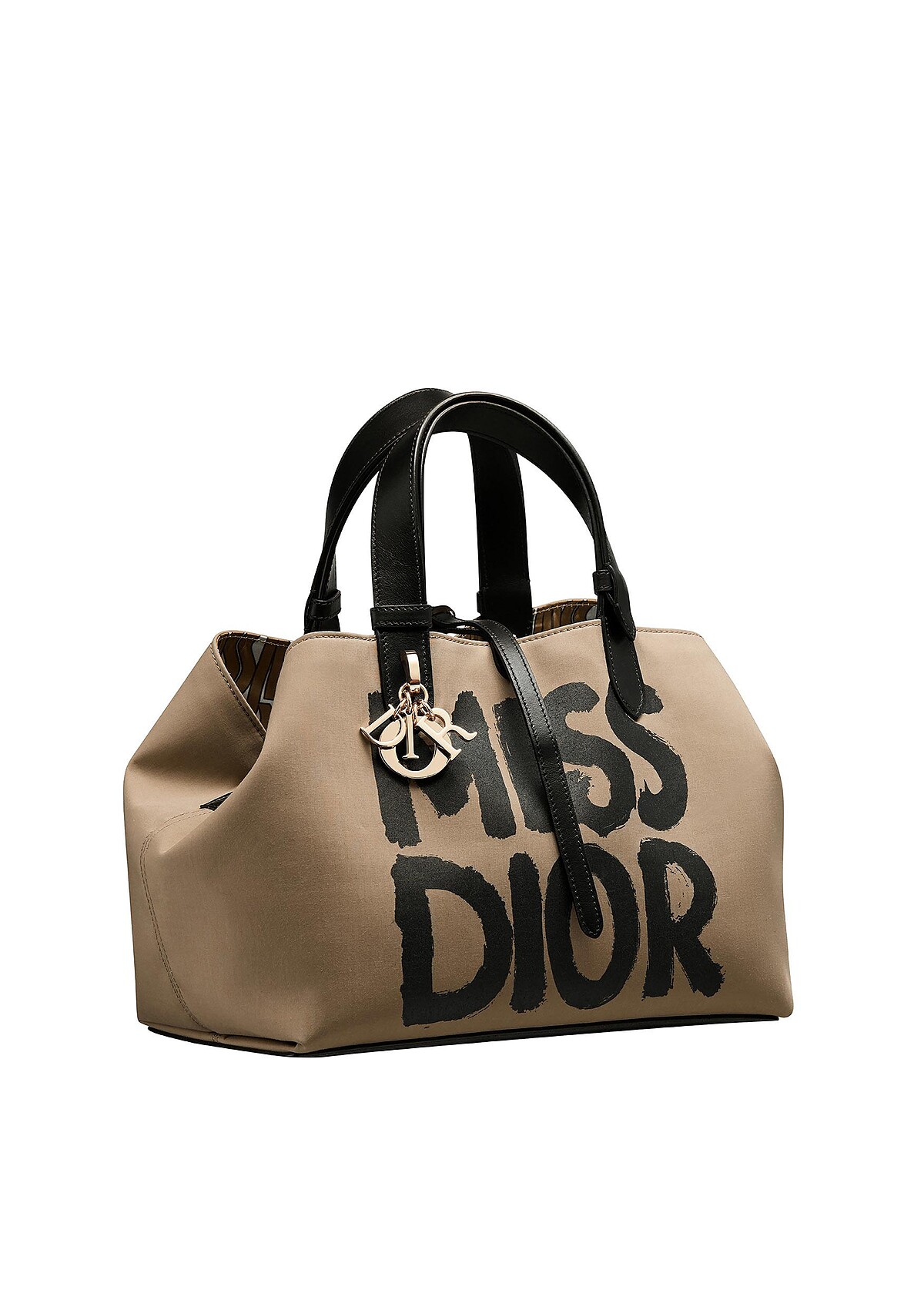 駝色防水機能布料與黑色 MISS SIOR 印花中型提包。