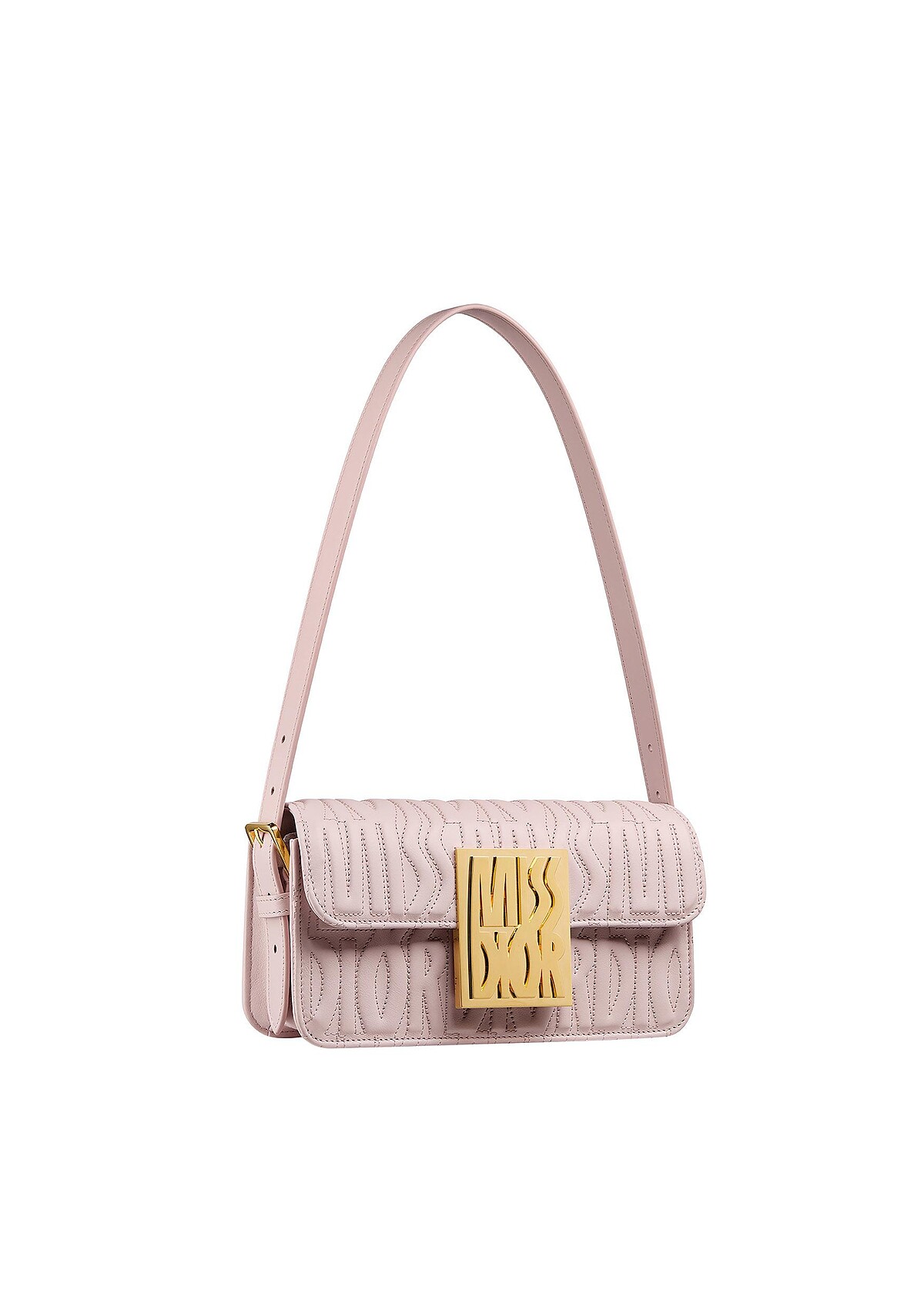 玫粉色 MISS DIOR ALLOVER 浮雕小牛皮提包。