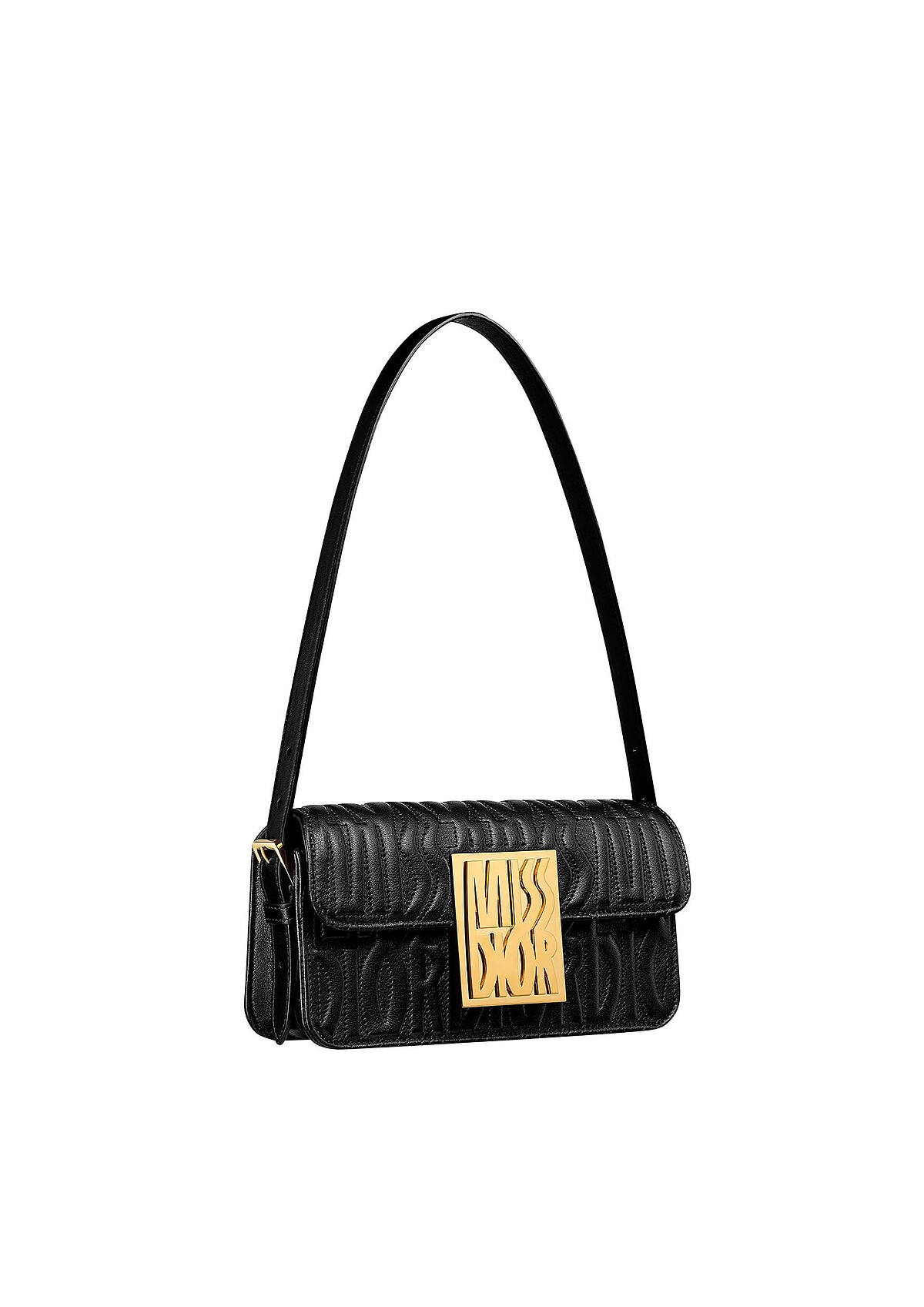 黑色 MISS DIOR ALLOVER 浮雕小牛皮提包。