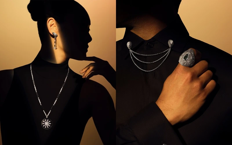 Forces of Nature高級珠寶系列從每種動物擷取一種特質,並透過感性的印象連結打造出充滿張力的作品。好比Protection子系列以oversized廓形和具份量感的金珠流蘇裝飾表現濃密獅鬃和獅子的守護印象;Magnetism套組透過白金鑲嵌欖尖形鑽石和橄欖綠彩鑽,勾勒出豹神秘魅惑的目光。Dignity系列則透過大地色系的彩鑽、鑽石原石和V形鏤空輪廓,完美展現長頸鹿獨特斑紋圖案和高貴氣質。