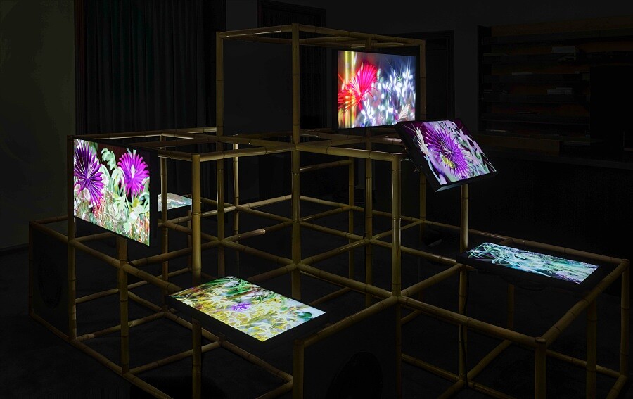 展覽以走進竹林小徑揭開序幕。自古以來便是東方文化中堅韌與高潔的象徵的竹子,有著細膩卻堅實的生命力,跨越語言與文化的疆界,在設計中成為包款綻放詩意。走進這一展區就像進入一個融合自然、生態與數位藝術的空間——小徑右側有著兩幅18世紀的竹子畫稿,向前看便是由藝術家Christian Kondić結合人工智慧創作的竹藝影像,如呼吸般流動,為竹賦予了科技語境下的新生命。這裡,竹不僅是一種材質,更是帶著自然與智慧的當代創作。