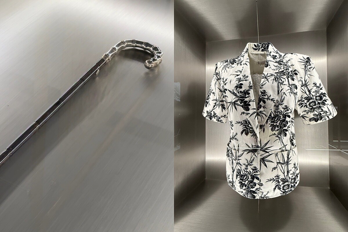 竹子不僅是包款手柄,也早已深入Gucci的視覺DNA。脈絡聯結展區帶我們看到竹節手柄的根源「竹節手杖」,以及竹節在品牌典藏絲巾、飾品與服裝設計上的脈絡,還有由CGI藝術家Sybil Montet打造的數位動畫裝置,以絲巾為載體將竹轉化為不斷生成的抽象形象,在自然寫實與視覺幻境之間自由流動,這不僅是對美學的延展,更是一場關於記憶、符號與風格密碼的重構。