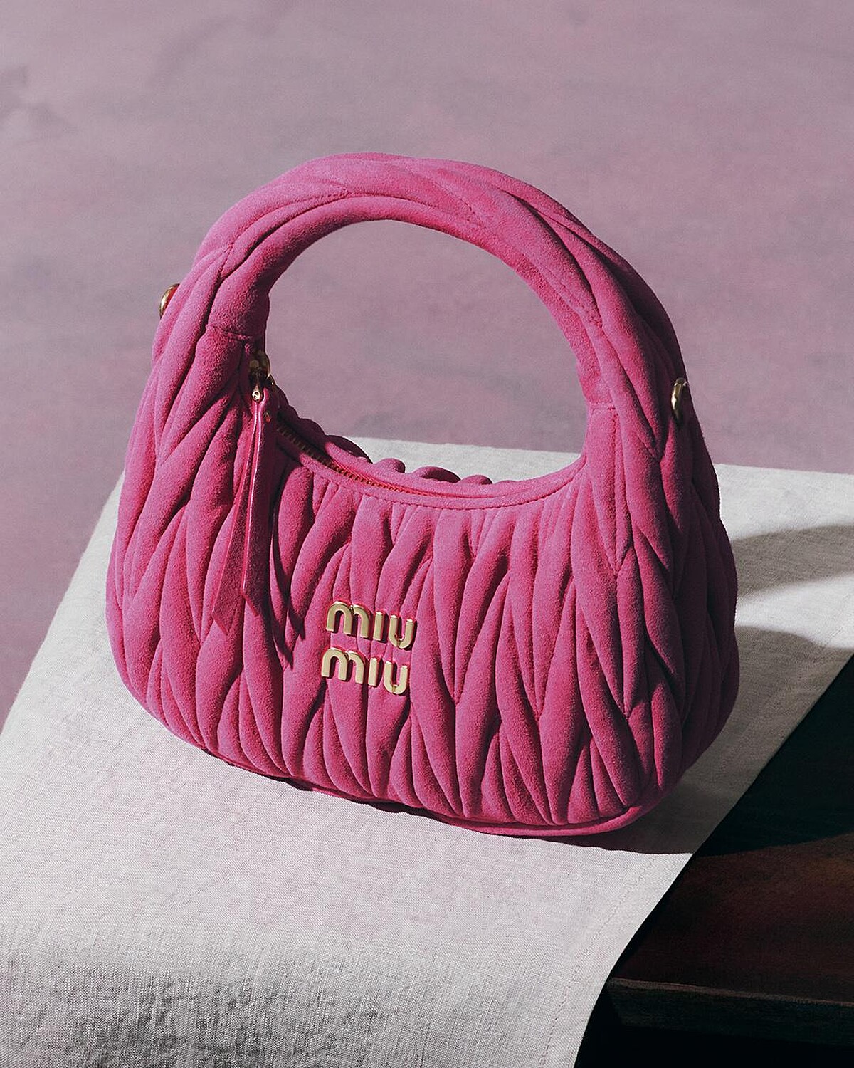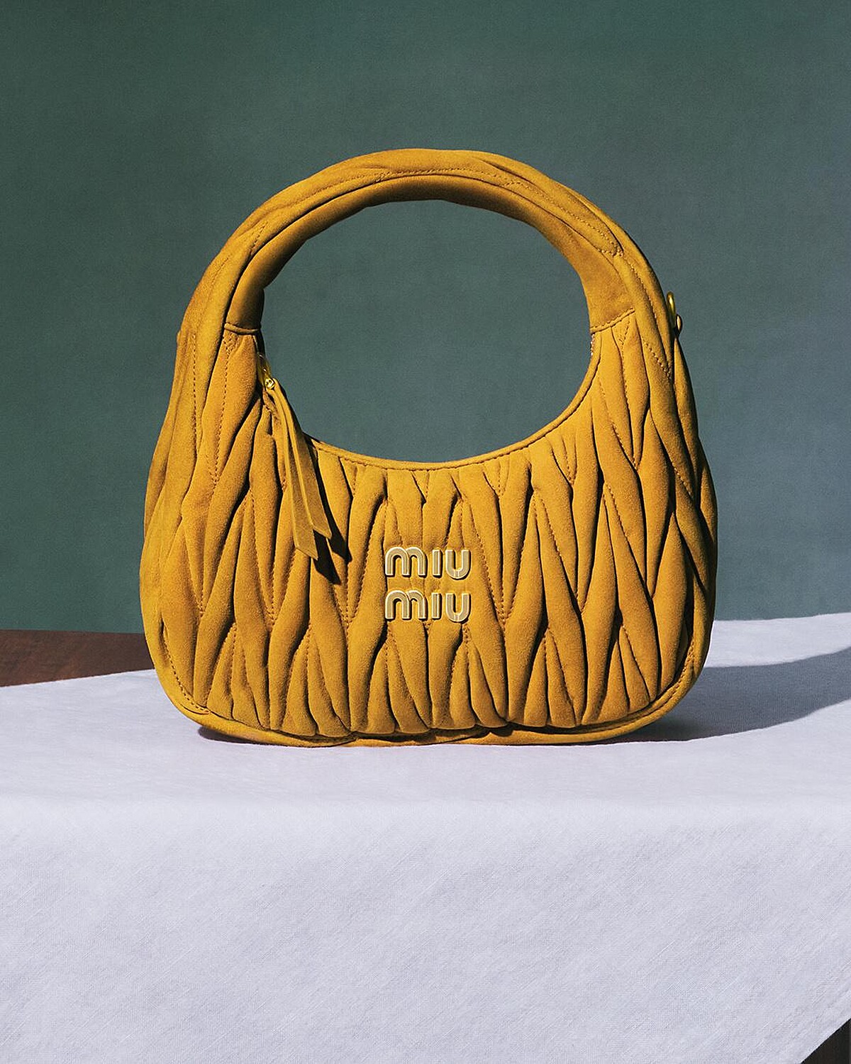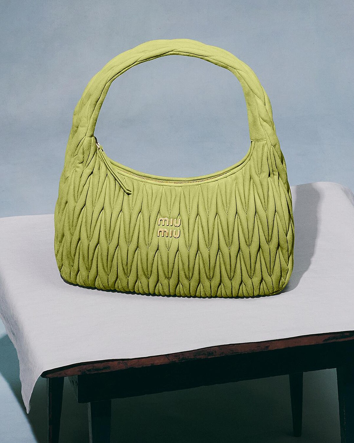 Gigi Hadid化身為畫布上的主角,身處鮮明色彩構成的空間中,凝視前方,靜止如雕像,卻同時傳遞內在的自我意識。他懷抱的Wander與Arcadie包款則換上全新麂皮材質,展現出matelassé工藝如絲絨般柔潤細膩的肌理,營造溫暖親膚的觸感,也呼應了畫面中所傳遞的私密與親密性。