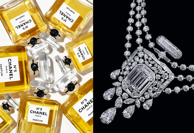 兩人口中「5」所蘊含的無限可能,在香奈兒的宇宙裡,早已幻化出千姿百態的模樣:特定選在5日發表的高級訂製服、2.55包款,還有萬世流芳的N°5香水。它不只是數字,亦是代表經典的符碼,寓意著歷久彌新的永恆。首見於2021年的N°5頂級珠寶系列,更延續了N°5香水撰寫的傳奇,藉由呼應香水珍貴液體色彩的黃金與鑽石,捕捉自上世紀飄盪至今的馥郁芬芳。