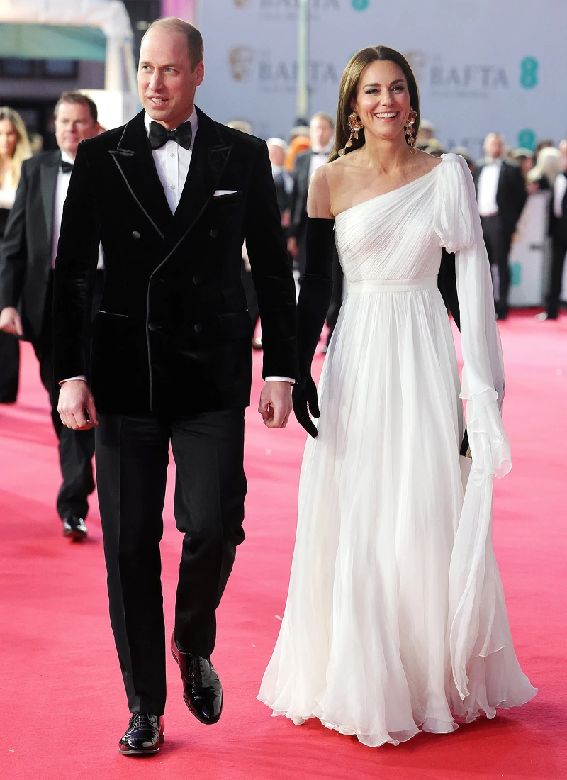凱特王妃出席2023 BAFTA時,再度穿上她曾在2020年BAFTA首次亮相的Alexander McQueen 單肩白色長禮服,搭配黑色長手套的造型,令人印象深刻。