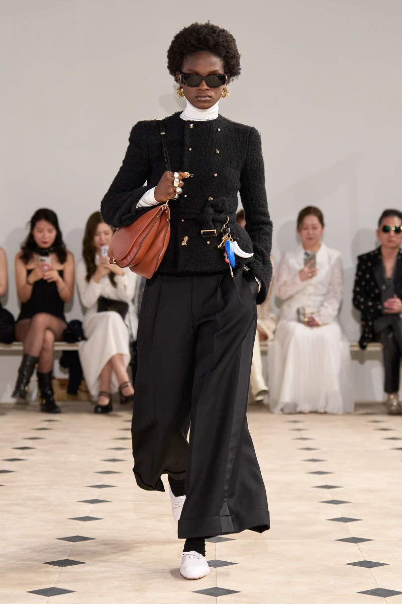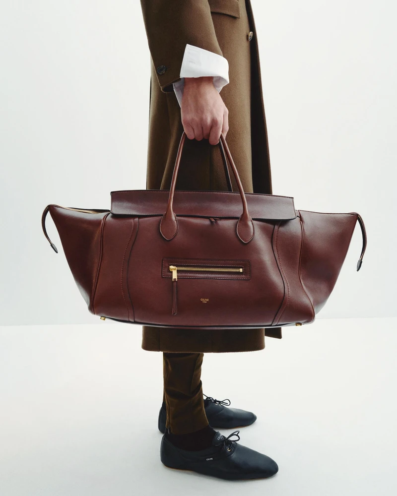 最令人驚喜的是,曾風靡一時、後漸淡出舞台的 It Bag——Celine Luggage Phantom囧包——在這場回歸之作中以嶄新姿態再度現身。Michael Rider 保留了2010年原始版本的經典提把輪廓,同時重新設計拉鍊細節,線條時而筆直,時而柔和蜿蜒,展現一種既延續也重構的節奏感。這種結合歷史與當代語彙的手法,不僅體現出他對品牌傳承的深刻理解,也彰顯其作為設計總監的革新姿態與文化敏銳度。