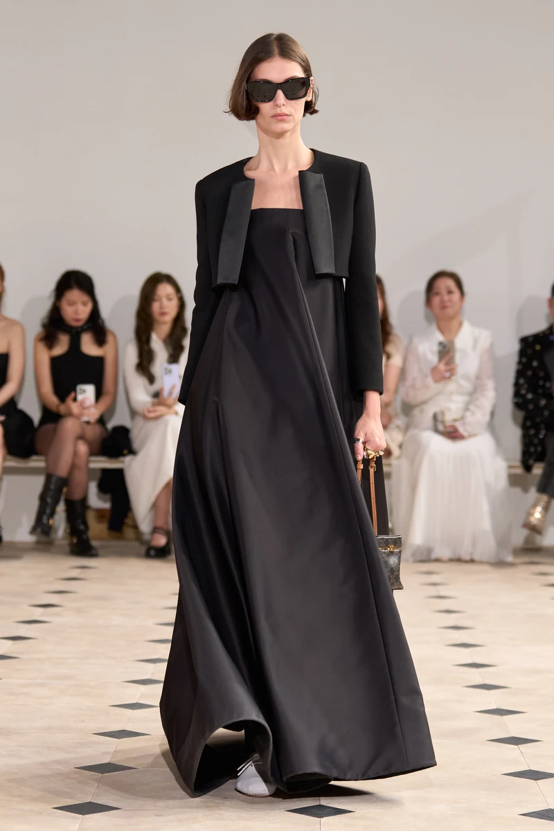 在巴黎第二區,微風沿著薇薇安街緩緩拂過,時間彷彿在這裡學會了靜止。16號門牌後,一座沉靜而尊貴的建築矗立著——科爾貝特.德.托爾西官邸(Hôtel Colbert de Torcy)。它曾是紅衣主教Mazarin收藏書畫之地,也曾見證巴黎證券交易所的喧囂,如今則靜靜守護著CELINE的靈魂。這座17世紀誕生的宅邸,歷經權勢更迭與命運流轉,從Tubeuf 家族到Colbert子嗣,在歷經1896年加建的玻璃穹頂,如今已成為CELINE創作工作坊的採光之源、一座凝結記憶的容器,還見證CELINE從工坊走入詩意的現代性——靜謐、堅定。Michael Rider選擇在這裡發表他的首場大秀,既是回歸根本,也是情感告白。當模特走在陽光灑落的石板廊道間,彷彿服裝與空間都成為書頁,共同翻動全新的巴黎詩集。