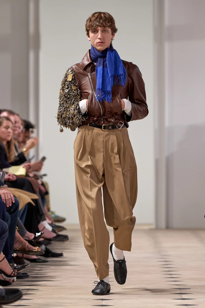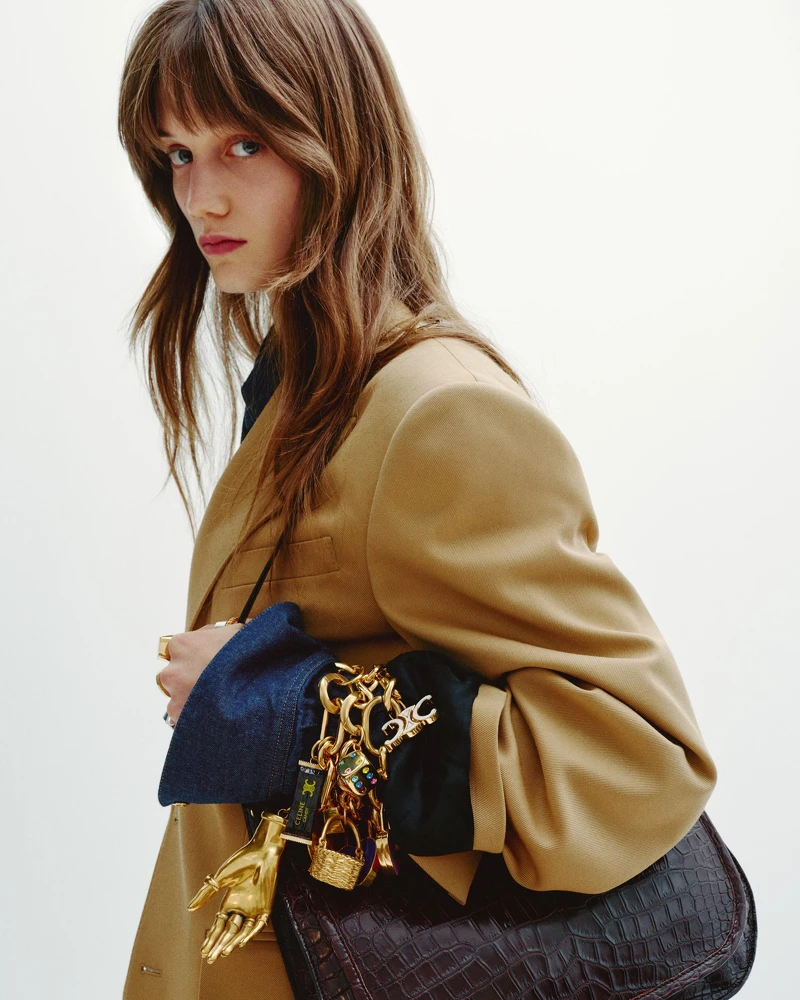 Michael Rider 深刻理解這段歷史,因此2026 春季系列可以看見他重新拼組那些曾讓 CELINE 成為巴黎女性衣櫃核心的經典元素——無論是靈感來自法國侍者制服、線條簡潔利落,自1980年代問世以來便成為 CELINE 代表性的中性單品經典 Chasseur 外套;又或是品牌自1974年以來不斷進化的丹寧設計——選用來自日本的高品質布料,由工匠手工縫製,歷經獨家洗色處理,每一件都帶有獨一無二的色澤與生命感,都逐一化為 Michael Rider 的新衣櫥體系:根植於傳統卻不拘泥於歷史的新時髦輪廓。