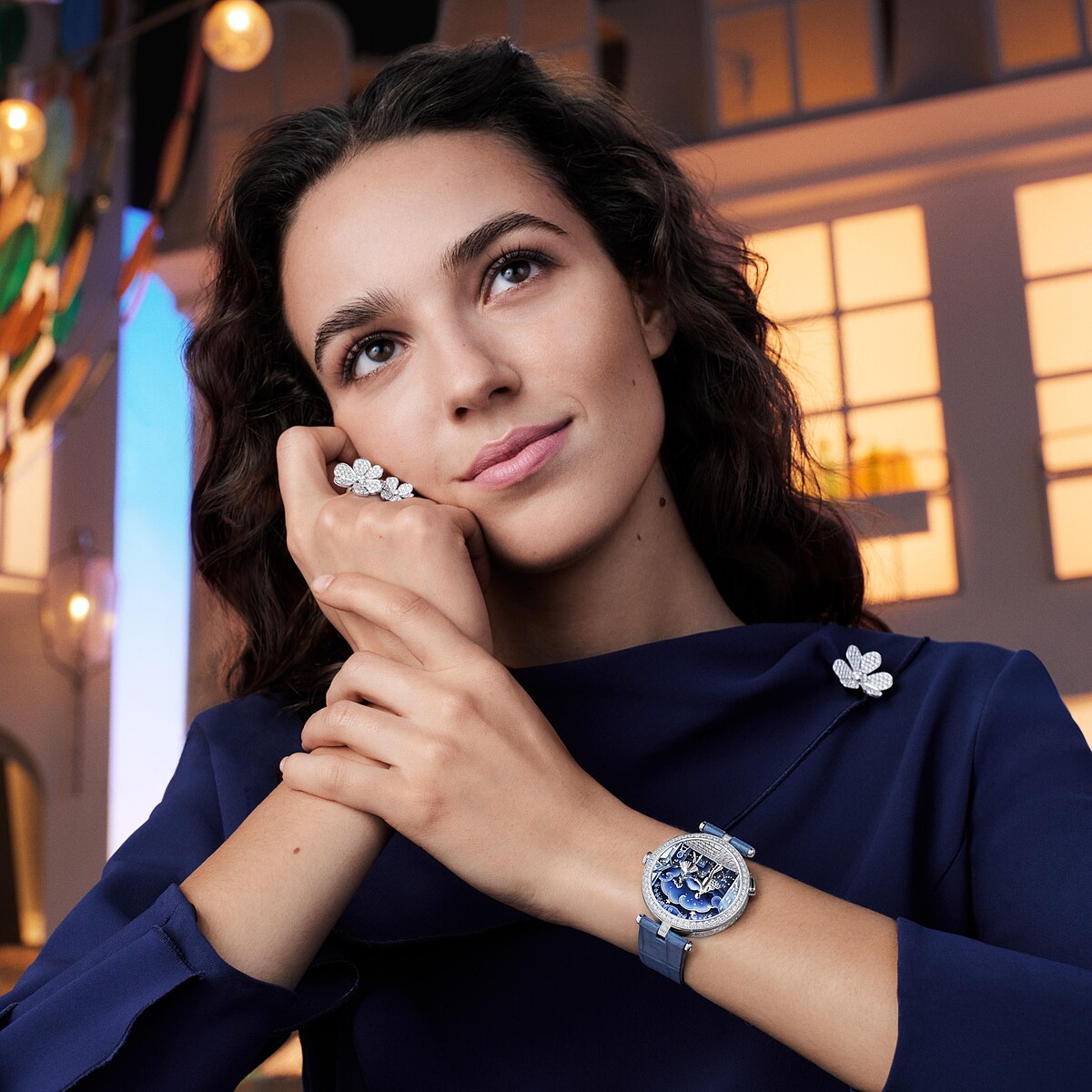 2010面市的Van Cleef & Arpels梵克雅寶Pont des Amoureux腕錶,是第一枚在日內瓦鐘錶大賞中奪魁的Poetic Complications詩意複雜功能腕錶。從此,Pont des Amoureux腕錶系列便持續描繪戀人盡訴愛意的主題為創作基礎,將戀人愛侶於巴黎橋上相會的旖旎時光,以雙逆跳機芯追逐小時和分鐘的行進,引領兩人在正午和午夜重逢,交換深情一吻。時間會在戀人相會三分鐘恍如靜止,直至再度分離,標誌著時與分便會進入新的循環軌跡。自主動態機械裝置讓腕錶主人可以隨時重溫這12秒的甜蜜悸動。而今年,Pont des Amoureux腕錶再添新作,四款腕錶紛紛換上珍貴的珠寶錶帶,演繹戀人日夜四時的浪漫約會,在錶盤方寸天地中細賞黎明、早晨、黃昏和月夜下的絕美景致。