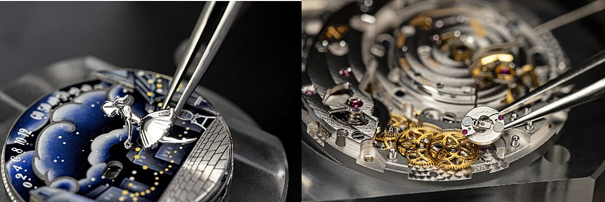 無論是以逆跳機芯優雅刻劃時間軌跡,或是自主動態機械裝置再現戀人浪漫重逢的景致……以千錘百鍊技術造詣結合創意巧思,工匠技師投注心血將琺瑯、微型彩繪、金屬鐫刻、寶石鏤雕和鑲嵌工藝薈萃昇華,使每一枚腕錶成為傳世珍品。