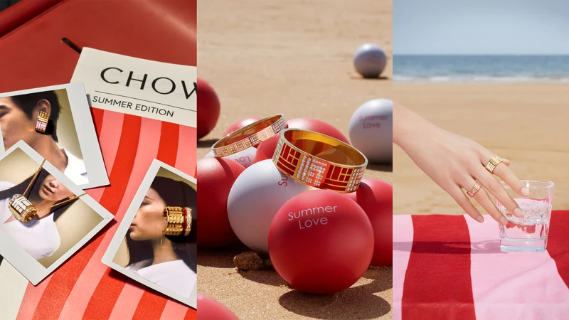 周大福「傳福系列」以充滿活力的周大福紅、白和粉紅三色繽紛搭配,呈現活力多彩的夏日色調;延伸以喜悅為靈感的「傳喜系列」盡顯當代摩登風尚,映照夏日的專屬意趣,玩味十足的圖樣及形態,承載永恒的幸福與喜悅;周大福將盛夏無數美好瞬間化為永恒珠寶,將夏日的青春、自由、熱烈和浪漫凝練成閃耀的印記,化作指尖流轉的福喜,喜悅蔓延心田,隨行你我。