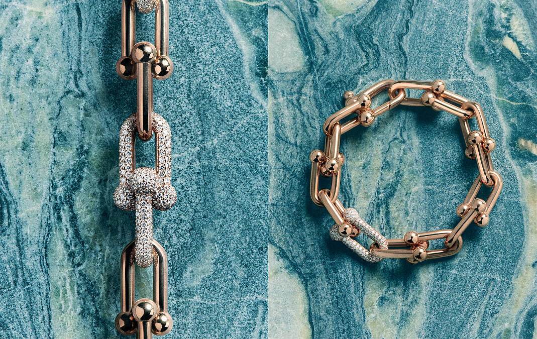 Tiffany HardWear系列設計靈感來自1962年品牌古典珍藏庫中的經典手鍊,以紐約獨具的都市活力為靈感,標誌性的鏈結與扣環設計,以層次豐富的大膽設計和存在感強烈的鮮明輪廓,既優雅又前衛,歷久彌新,在形貌上創造出風格獨具的珠寶美學,內涵上則展現如同紐約這座城市般的堅強韌性、自由不羈與力量,有愛的變革之力的寓意,象徵珠寶不再只是愛的傳遞或者造型的點綴,而是一種力量的延伸,一種無懼世俗定義的自我表達,是當代女人獨立與自主的展現。