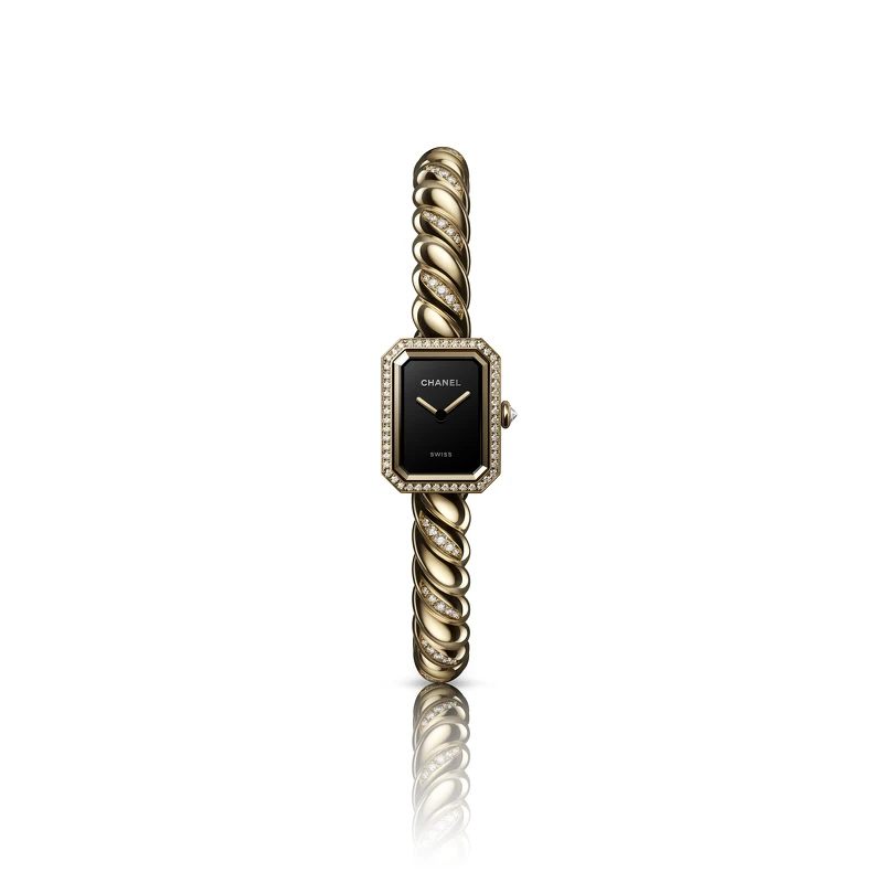 2025年,全新登場的 Première Galon 腕錶,將香奈兒女士的高級訂製語彙轉化為腕間藝術。「Galon」一詞源自香奈兒套裝外套上的編織緄邊,那條象徵精緻與力量的線。腕錶創意總監 Arnaud Chastaingt 以此為靈感,將針織與纏繞的紋理轉化為18K黃金手鐲,將高級訂製的觸感帶入製錶工藝。