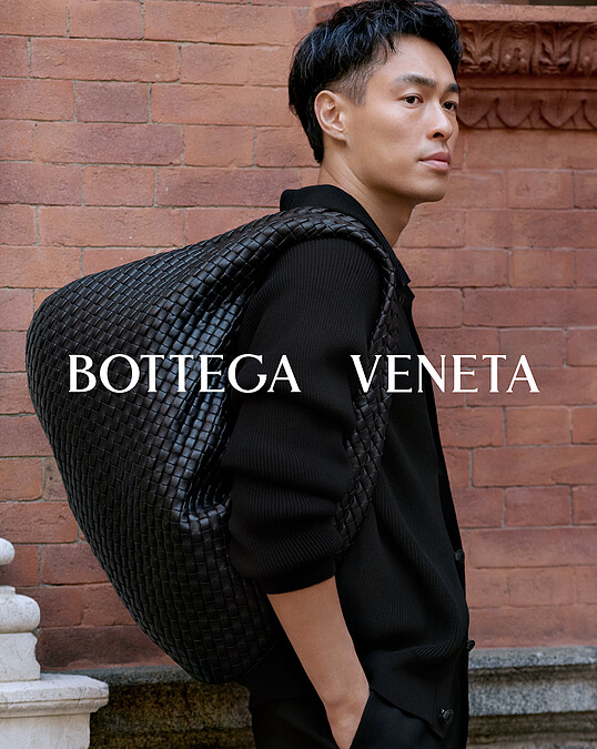Veneta提供三種尺寸與五款全新配色,回應不同生活節奏與日常需求。可手提、可肩背的多元佩戴方式,使包款隨身體律動而自然流動。全新形象廣告中,Bottega Veneta 捕捉三位品牌大使於城市間漫步交談的真實瞬間,Veneta 被提起、放下、靠在身側,如同工藝自然融入生活的一部分。