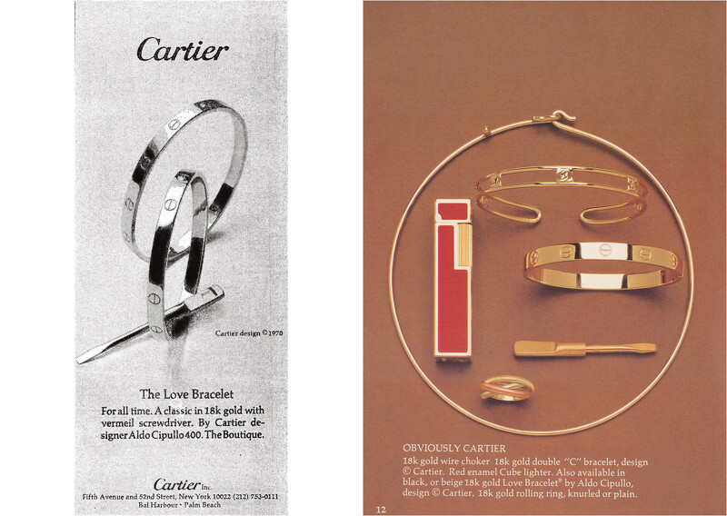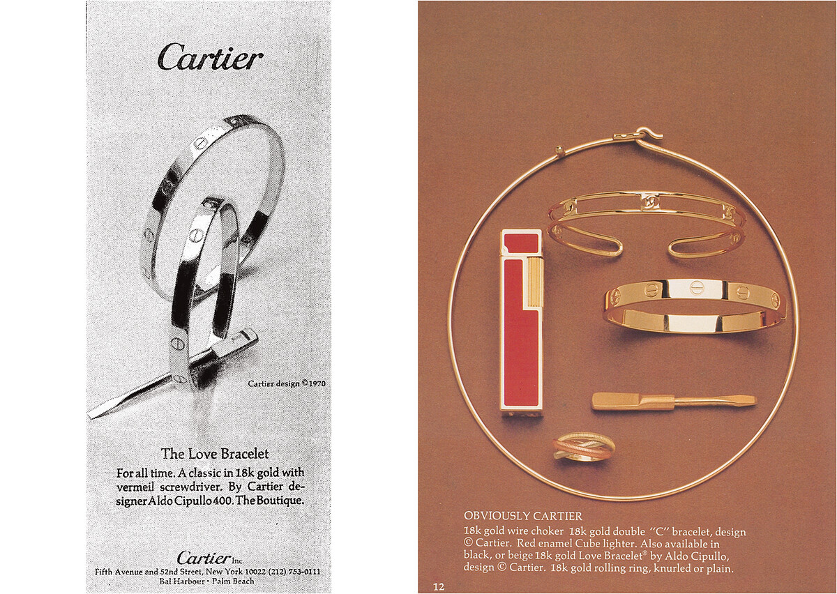 這款別具意義的設計誕生於文化與藝術浪潮激盪的年代,設計師是當時創意界先鋒人物-阿爾多 · 西皮洛(AldoCipullo),大膽外露的新穎螺絲圖案展現出獨樹一幟的珠寶美學,手環推出後不久,一幅戀人親密牽著手,兩人腕間都戴著LOVE手環的廣告照片攻佔了紐約各大報章雜誌,簡單卻愛意滿滿的語彙讓LOVE手環瞬間瘋迷全球、幾乎人手一只,甚至流傳著許多醫院都備有螺絲起子,以便在緊急醫療時能立即為病人解開手環的軼事。可見,LOVE 不只是全球戀人心中的經典,更成了時代的象徵,它不只是象徵愛,它本身就是愛!