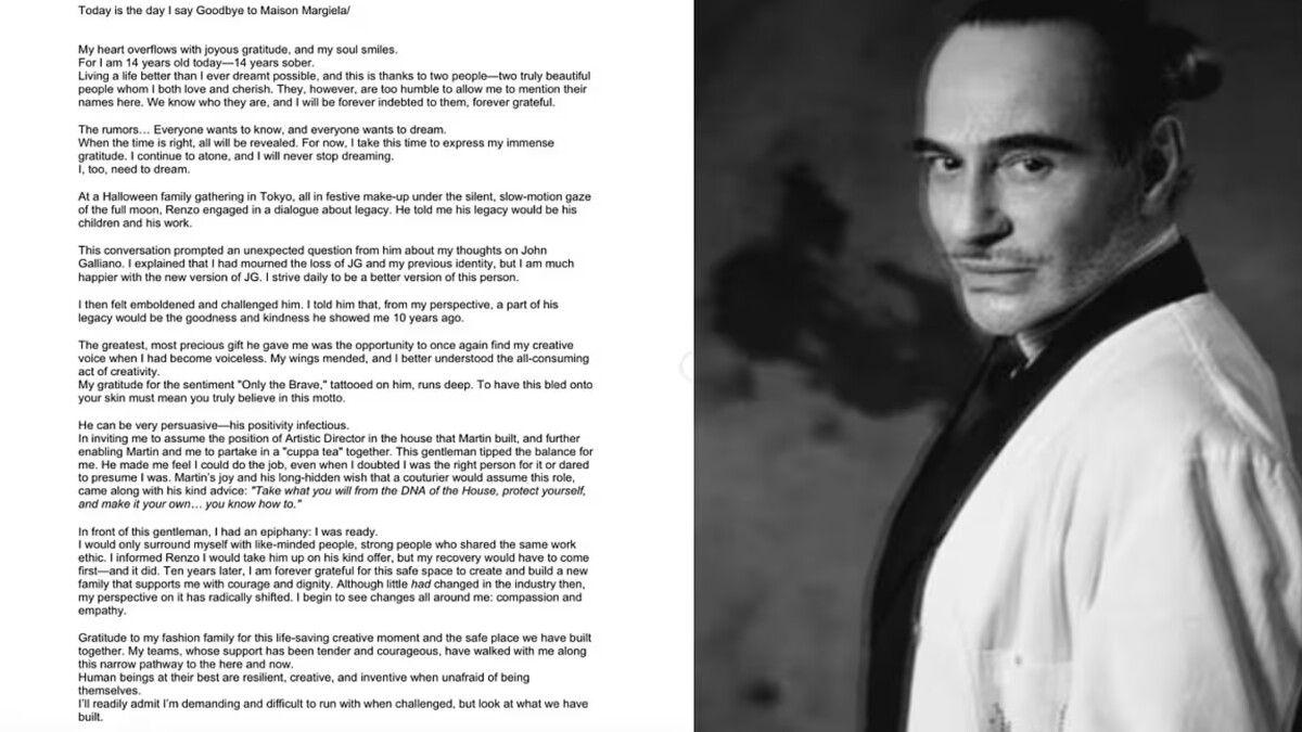 - John Galliano感性寫下離別信,確認離開任職十年的Maison Margiela