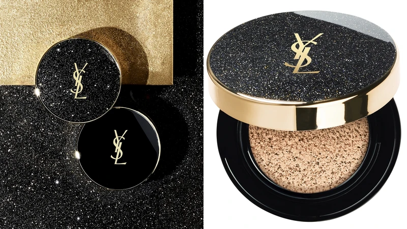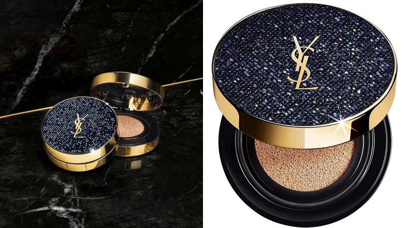 靈感來自YSL歷年來秀場上令人炫目神迷的亮片材質,滿佈黑色與深藍細鑽的外殼,拿在手裡極為閃耀,猶如手握一整浪漫星空般浪漫迷人。裡面的氣墊色號則有三色(#N10、#N20、#N30)可選
