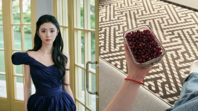 劉浩存即使在未修圖的照片中,依舊被讚「美得無死角」。她分享平時很愛吃水果,如石榴、梨子、葡萄等。這些水果富含維他命C,有助養顔美容。