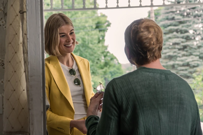 不僅是霸氣演技令人讚嘆,羅莎蒙派克在片中還連換數套服裝,宛如是她的服裝秀,當她初次接近要詐騙的「獵物」時,就換上一套鵝黃色套裝,用看似溫和無害的外表讓獵物上鉤。當她在談判時,又穿上另一套紅色連身裙展現不同風情。