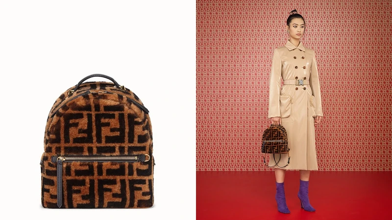 喜歡毛茸茸質地的女生,不妨入手FENDI這款具有雙F LOGO的迷你後背包,選以羊毛作為主要原料,結合滿版的雙F LOGO設計,背帶則是由皮革與金屬鍊帶組合而成。亮眼的外觀絕對能讓你成為街拍最受矚目的焦點。