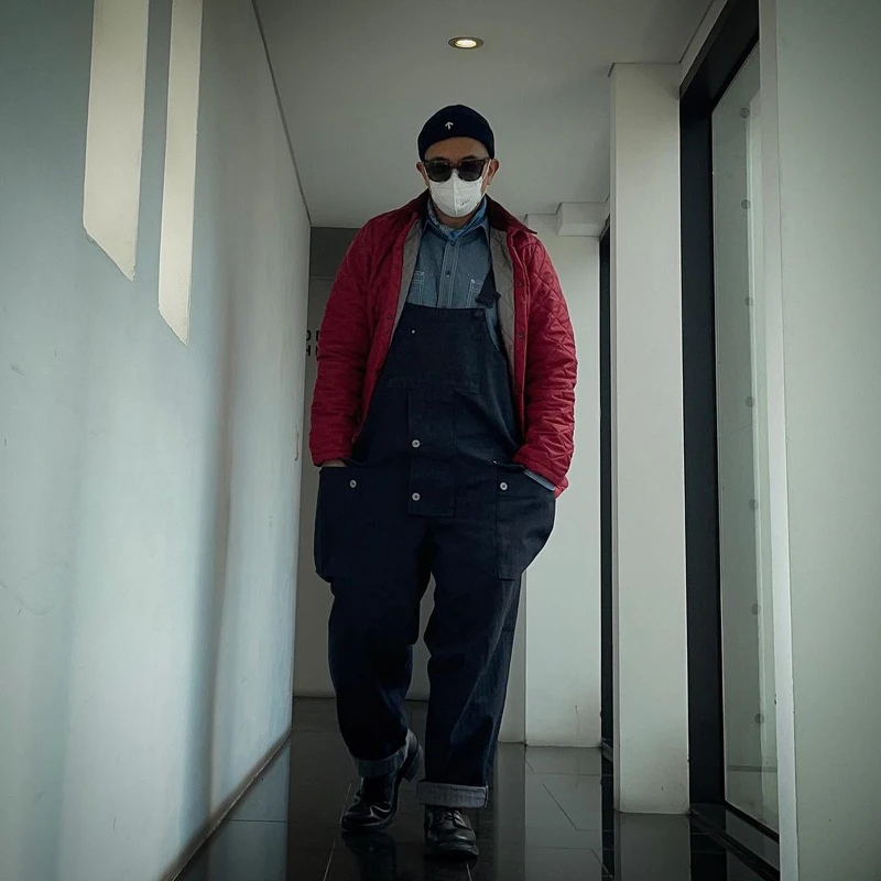 而具俊曄在個人社群分享的,則是 Nigel Cabourn 的經典風格,連身吊帶褲搭配外套與襯衫,畫龍點睛的短版毛帽是不可少的必備單品。