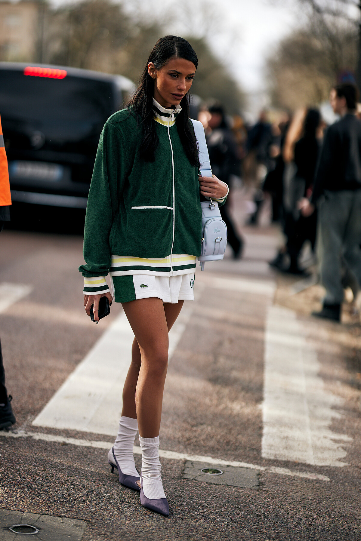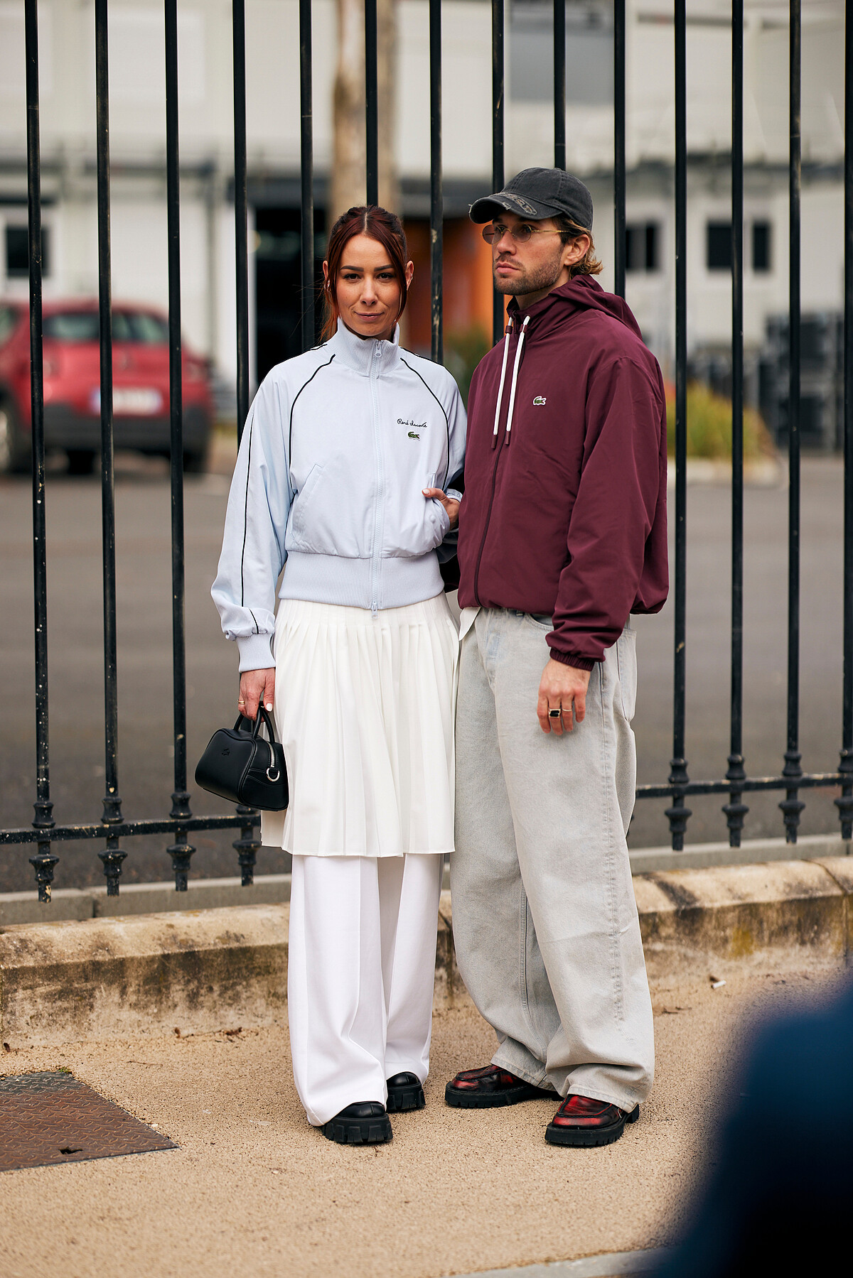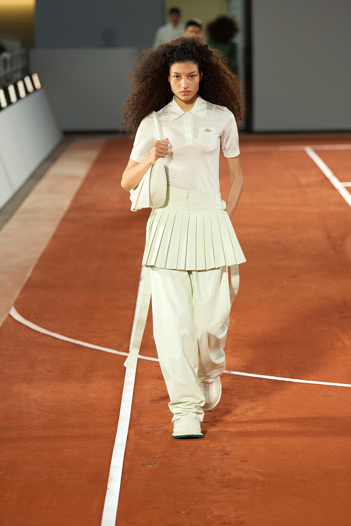 想要中性一點或有個性一點的穿法,不妨挑戰最近又流行起來的「裙褲疊穿」,這個千禧年曾大火過的穿搭又捲土重來ㄈLacoste在2024秋冬系列示範將百褶款式的網球裙穿在西裝褲外層,再搭配Polo衫詮釋時髦的都會運動風。
