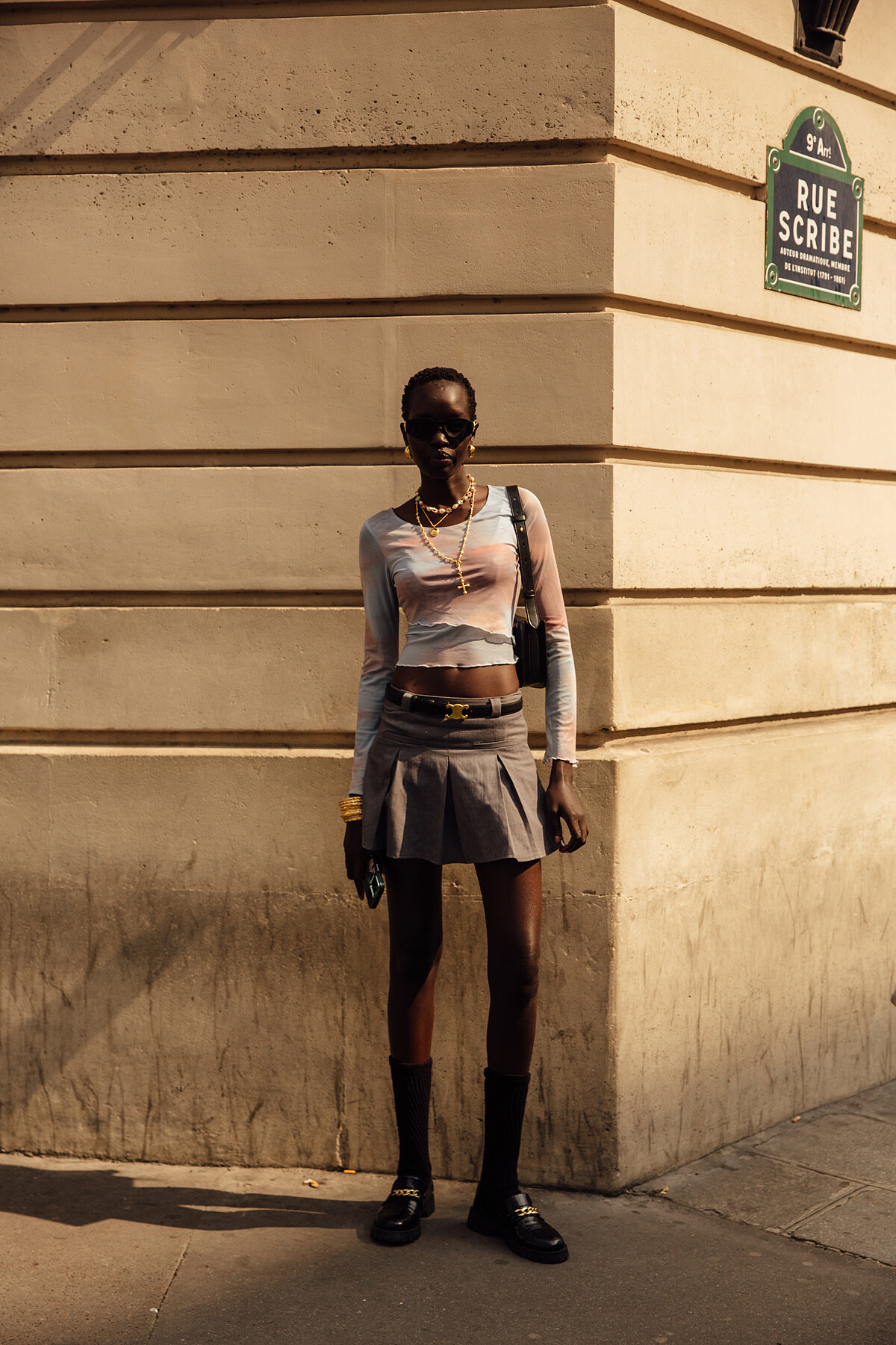 或者像街拍潮人將網球裙穿在牛仔褲外層,上身搭配T恤、襯衫,善用層次感打造街頭酷勁。