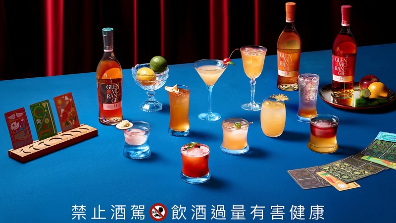 位於台北國泰萬怡酒店14樓的Drift Bar,攜手格蘭傑單一麥芽威士忌Glenmorangie,以旗下的經典格蘭傑10年、格蘭傑12年雪莉桶、格蘭傑14年波特桶酒款做為基底,並把塔羅占卜作為主要形象,呼應其品牌標語「趣‧味 妙不可言」,打造9款「無限暢飲」調酒酒單,包含命運之輪、節制、戀人、世界、惡魔、星星、太陽、月亮、魔術師,為品酩時光更添趣味話題,另有3款純飲提供,包含愚者、隱者、審判。