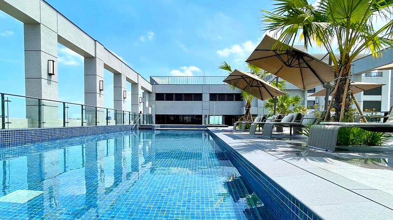 最大亮點更是台南第一間「頂樓空中花園泳池」,能飽覽夕陽景色、遠眺安平海際線、山巒層峰,搭配植物及躺椅造景、造型浮具增添渡假氣息。使用高規格銅銀離子設備殺菌、不用氯錠消毒,勢必成為網美拍照打卡取景地!未來還會規劃星空酒吧、泳池趴,越夜越好玩。