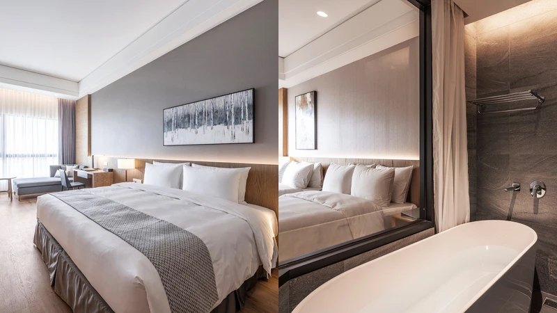 全館規劃180間客房、7種房型,呼應古都悠久歷史,整體以日系輕奢時髦風格為主,客房以現代簡約風格為主,結合原木質感,呈現出令人放鬆的高雅品味。每間都有大面開窗能引進日光、有了延伸通透視覺,也全面設置免治馬桶、浴缸(經典客房除外)、日式浴衣浴袍,以緩解旅客舟車疲勞。