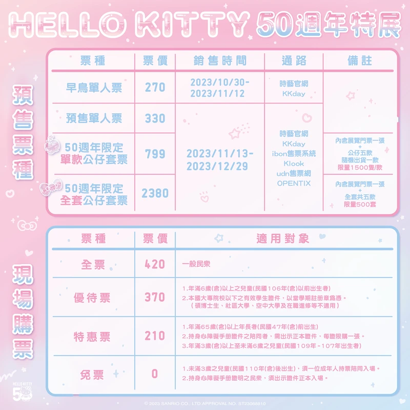 「50週年限定全套公仔套票NT$2,380」11月13日~12月29日