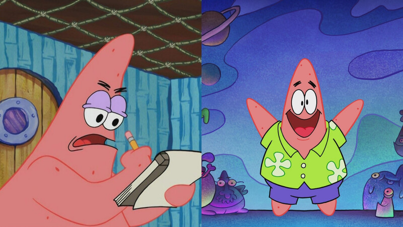 說到派大星,先想到的形象是憨憨呆呆的,常常做出許多讓人捧腹大笑的無厘頭舉動,但其實派大星最開始的設定,是個憤世嫉俗的酒吧老闆。海星雖然沒有腦部結構,但真實性格卻十分兇猛,甚至會危害到其他物種,可以從派大星會失控生氣與使用暴力看到海星的個性,不只是個單純的粉紅傻大個而已。