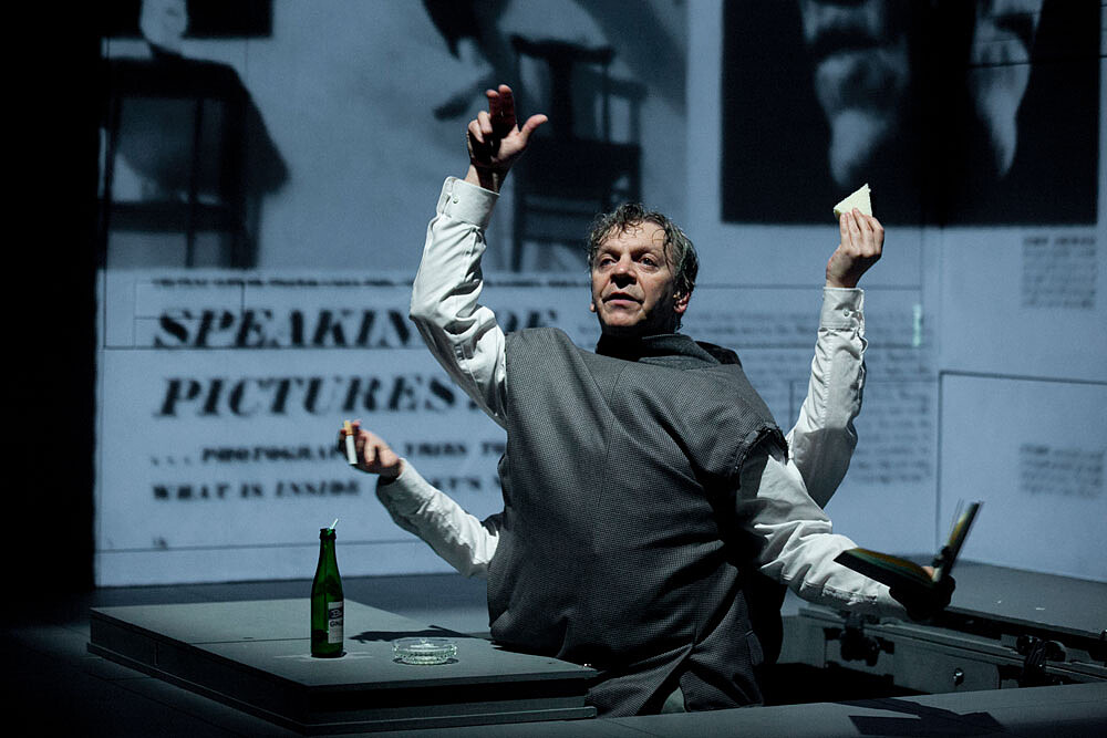 回到二○○八年,這位魁北克導演的作品第一次來台灣時,也是獨角戲《安徒生計畫》The Andersen Project。我還記得看完戲碰到一位文學界的編輯朋友,他直跟我讚嘆說:「勒帕吉真的太會說故事,完全都沒有感覺兩個半小時過去了。」我們就先以這齣在國家劇院演出過的作品出發,來講解勒帕吉獨角戲的特色。