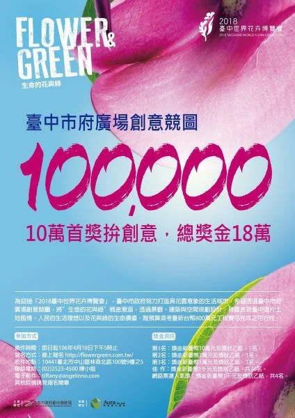 而本次「生命的花與綠」競圖活動,更希望透過徵求廣大民眾的提案,能夠將市府廣場規劃成呼應花博,連結人與花的市民廣場,為花博活動暖身,讓臺中市府深刻感受花博舉辦的榮譽感,也讓全臺灣透過活動系列活動關注臺中。