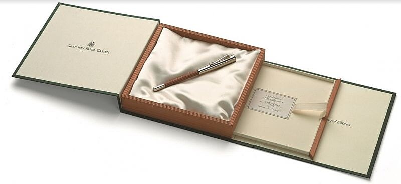 這隻完美鉛筆為FABER-CASTELL 240週年紀念商品,由西洋杉與18K白金延伸筆帽組成,筆帽端嵌入三顆約0.06克拉的鑽石,被譽為世界最頂級的鉛筆。