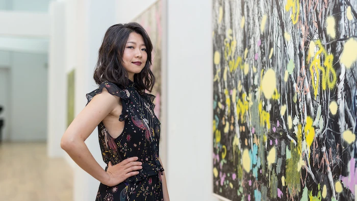 她是許常郁,出生於1985年的台北,現在則居住於風景秀美的瑞士。2016年起定居瑞士鄉下,突破以往的繪畫方式,抽象線條的表現結合了油畫和噴漆,呈現強烈的反差感,風景畫的視覺訊息在噴漆過程中並未崩解,只是由外顯轉向內蘊,讓乘載身體與潛意識訊息的筆觸由內藏漂浮向表層,也轉化與重建新的視覺訊息。