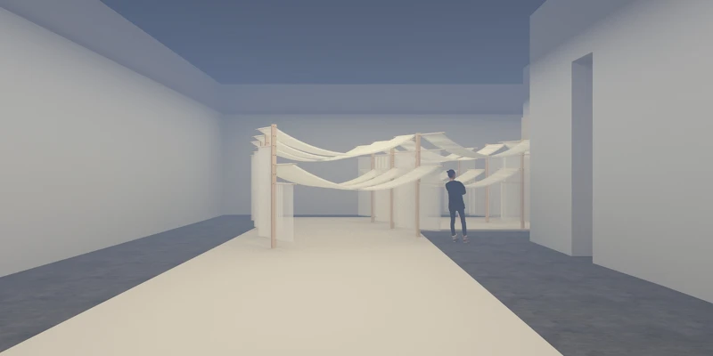 (雲霧、山嵐、曬麵場,展場模擬示意圖。)