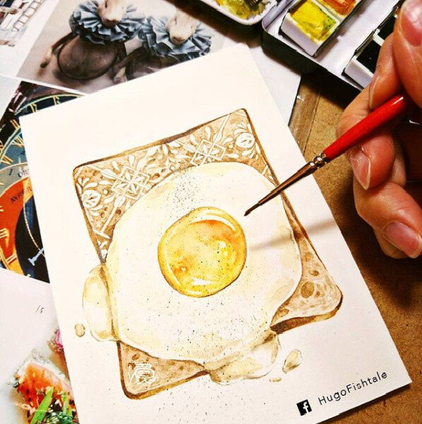 A:「其實還是漂亮的食物像是甜點居多,樣子很好看就會想要記錄下來,但有時候也會吃著很日常的食物忽然有天馬行空的想法,就一定會畫下來,對我來說這比較有趣,想要跳脫大家對這種日常食物的既定印象。」