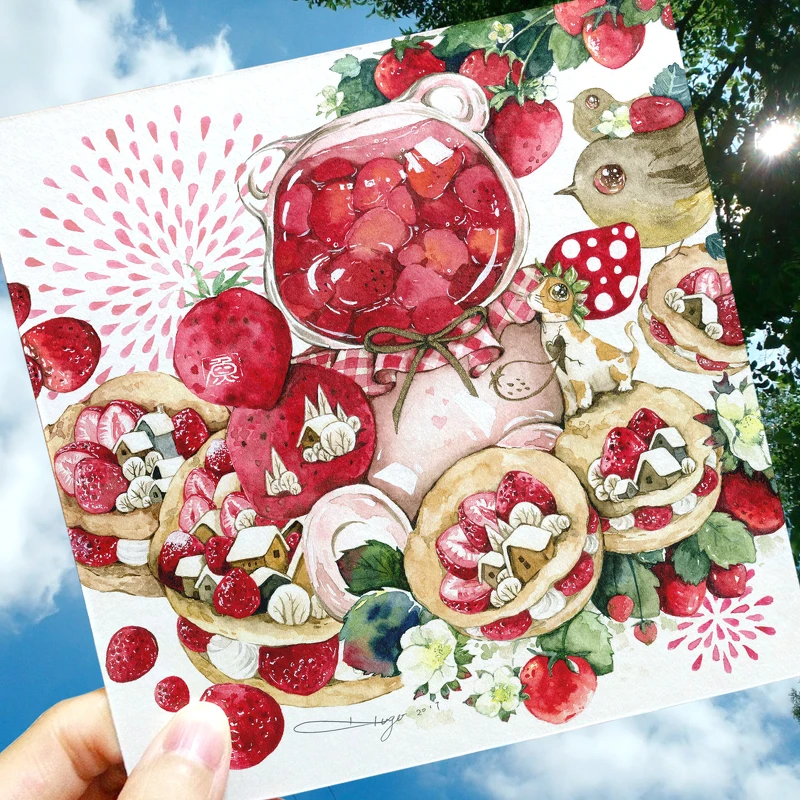 我想這就是為什麼看魚果的作品總是感覺畫面裡的食物在閃閃發亮,很難不被吸引目光,更會不由自主地去想像這道食物的味道,最特別的是在食物畫面裡那些添加的小小奇幻幻想,會讓人想集中注意力的看下去,似乎有什麼故事正在發生…