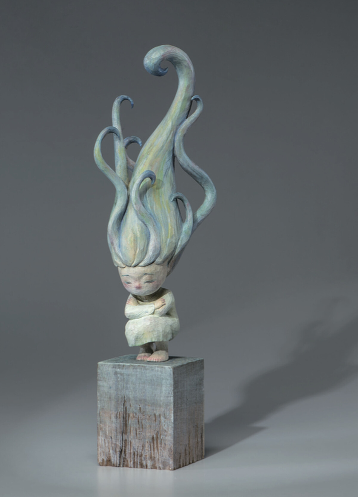一路以來,藝術家劉欣宜默默做著雕塑創作,只希望她的毅力能夠感動他人。一筆一筆雕刻出率真又有毅力的執著,沒有太多裝飾,簡單的造型就能達到療癒的效果。她的創作帶著天真無辜的外表,孩童的面容,除了表達率真,也表示最純粹自然的樣子。帶有溫暖的柔美色調,看見她的作品會好奇:為什麼自我的意識強烈無比,彷彿不食人間煙火的孩童,不管世界運轉、時間快速流逝、這些人物都活在自己的時間裡掙扎反抗?如同插畫作品立體化的溫暖風格,只要走一趟,相信劉欣宜的作品絕對能讓你產生極大的共鳴與感動。