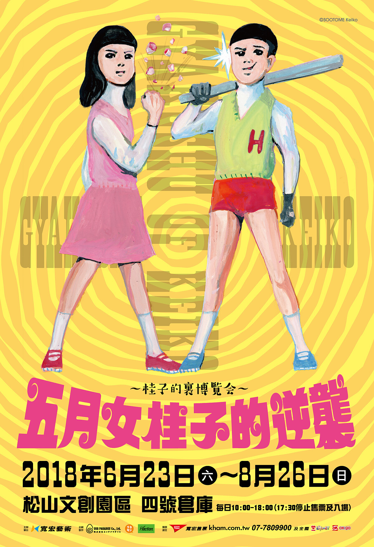 這次五月女桂子將強勢登台,在台北松山文創園區帶來《五月女桂子的逆襲~桂子的裏博覽会~》特展,現場將呈現五月女桂子的 Line 貼圖「逆襲」系列插畫作品,除了珍貴手繪原稿之外,也將展示她的跨界創作,例如小說封面、雜誌封面、電影主視覺海報等等,現場更規劃超過30個打卡點、Kuso小道具免費租借;此外,等比例公仔亦將首度現身!讓你拍下自己專屬的搞怪逆襲照!