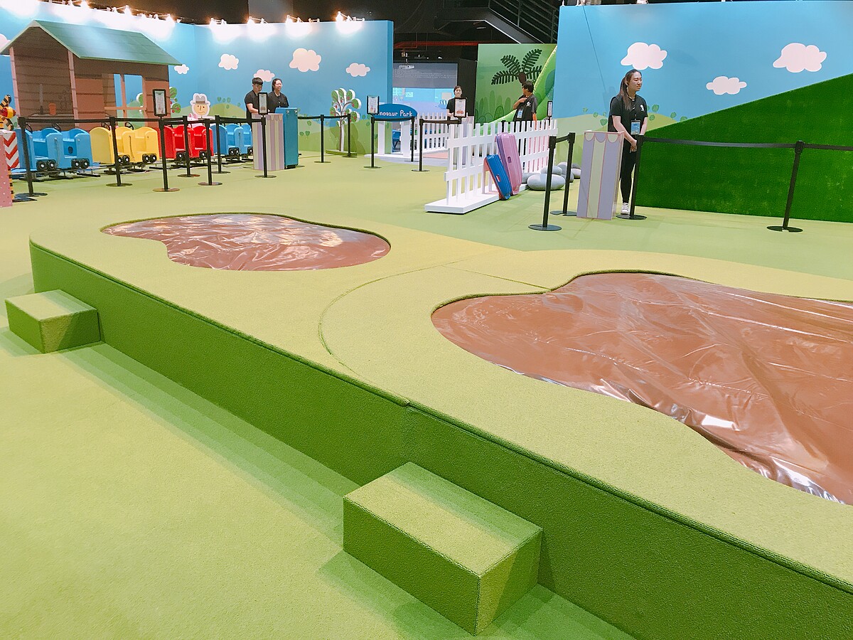 為了重現經典卡通場景,展覽中也會展示佩佩豬最喜歡的泥巴水坑、夢幻的皇宮體驗區及爺爺豬擔任列車長的小火車,以及巨大的恐龍先生溜滑梯。可以讓爸爸、媽媽帶著家中的小寶貝,來到這裡體驗最貼近佩佩豬的一切。