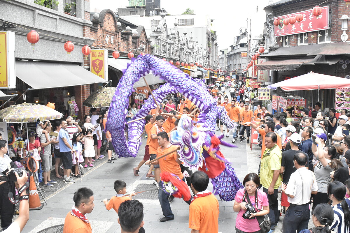 (普濟堂前,迎六月廿四拜神。)