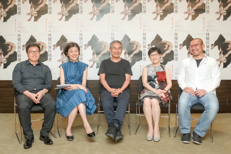 (雲門舞集45週年《林懷民舞作精選》宣告記者會,左起:臺南市政府文化局專門委員 陳修程、臺北國家兩廳院藝術總監 劉怡汝、雲門舞集創辦人暨藝術總監 林懷民、臺中國家歌劇院藝術總監 邱瑗、衛武營國家藝術文化中心 準藝術總監 簡文彬。)