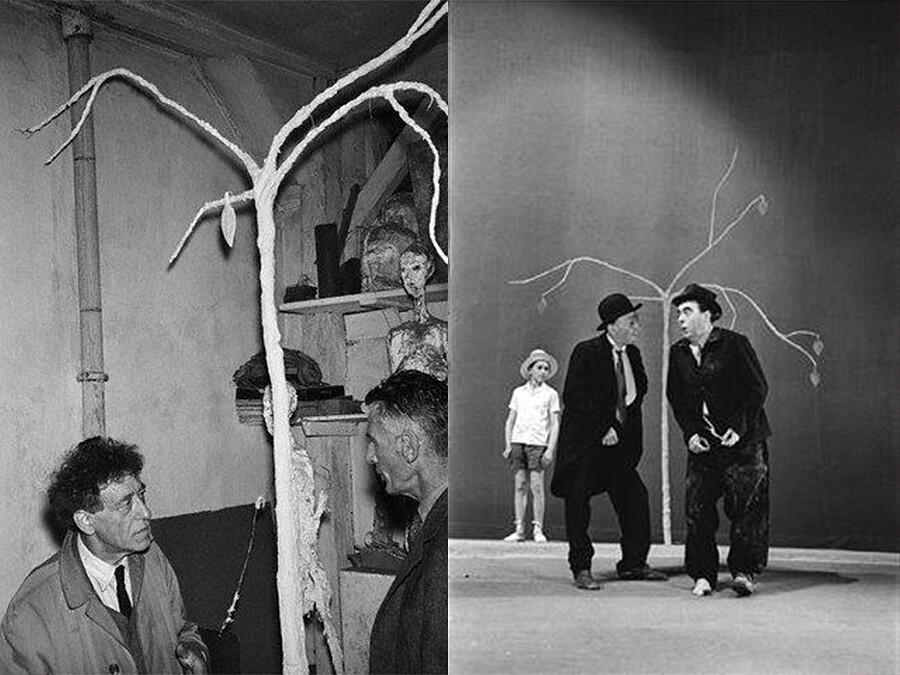 (圖中,是賈柯梅蒂為貝克特《等待果陀》製作的舞台裝置。)