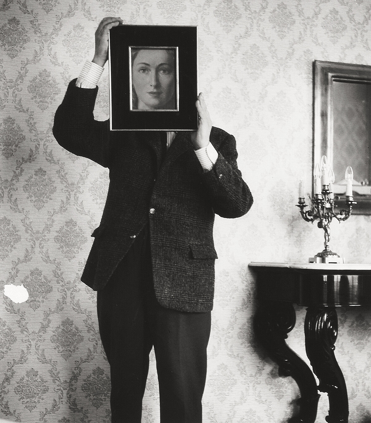(Shunk Kender: Rene Magritte and The Likeness (La ressemblance) (from TheEternally Obvious), about 1962 Collection: Private collection, Courtesy Brachot Gallery, Brussels Medium: Original photograph)