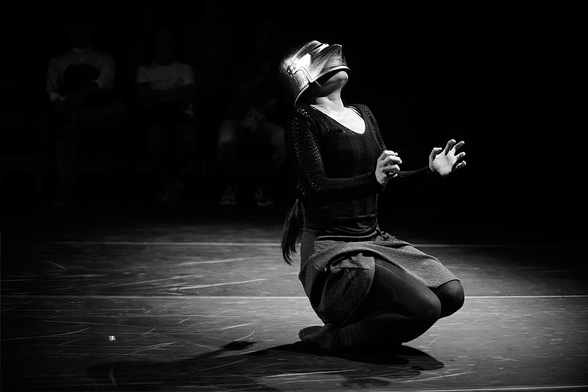 於是在本次表演中,體型嬌小的舞者穿上13公斤的鎖子甲、擅長Hip Hop的表演者腳部被護腿與鐵鞋緊緊包覆、專長思考的編舞家戴上了頭盔、男舞者手臂被厚實護手捆裹。這樣的設計不僅呈現了編舞家對身體的有趣反思,也帶出了人類在這瘋狂社會中要怎麼「存活」的複雜議題。