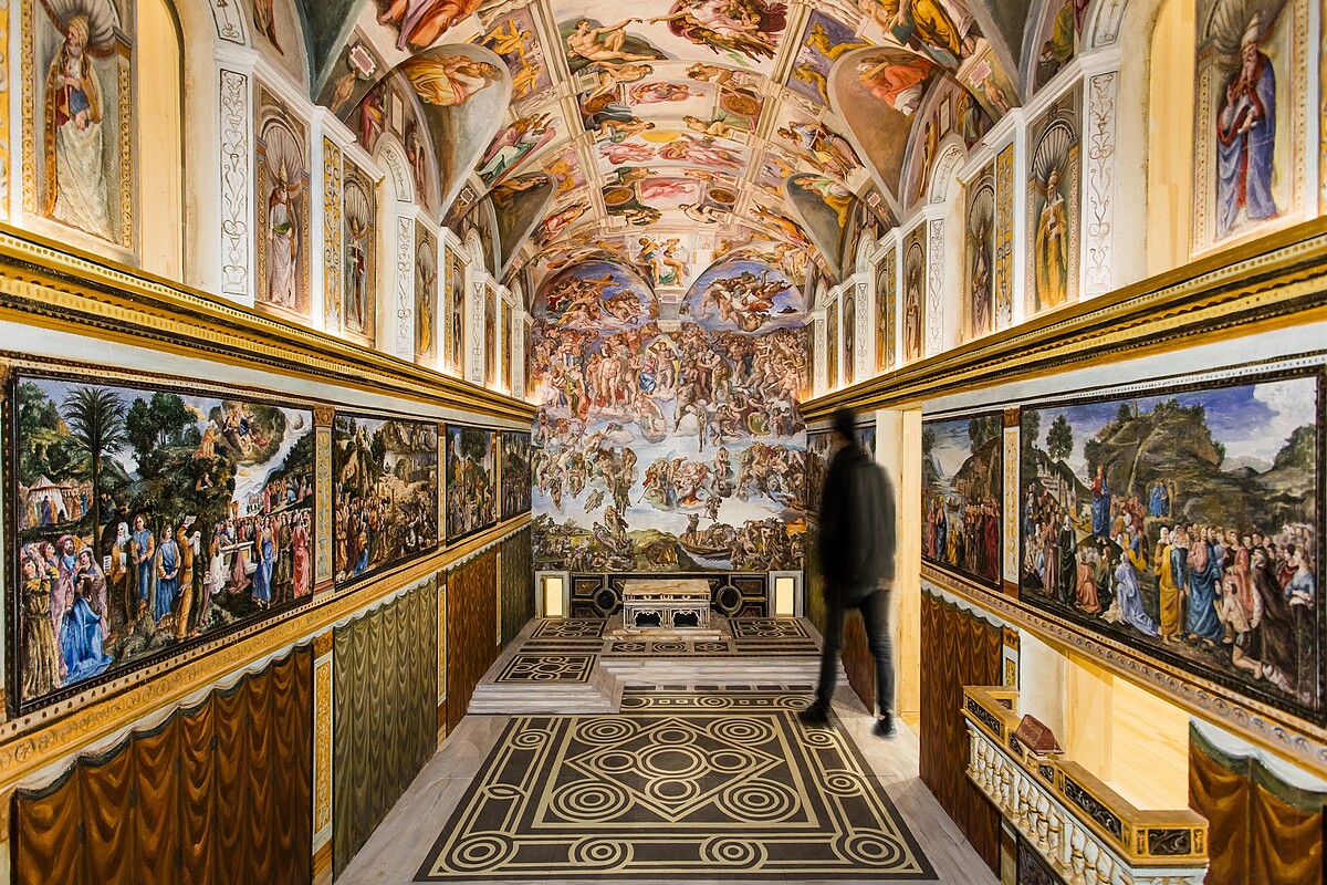 這般超有態度的卡特蘭,不只擔任《藝術家此在》的策展人,他還在第六展廳創作了《無題(Untitled)》。這個作品是卡特蘭以一比六的比例,重新複製西斯廷教堂。會選擇這個教堂,是因為相傳米開朗基羅離開羅馬的原因,就是因為他不讓教宗看他在西斯廷教堂的作品,而惹惱教宗。卡特蘭在此提出了有趣的論點:倘若能夠將教堂的複製品放在博物館內展出,那複製品的藝術價值是否與同作有相同價值?除此之外,卡特蘭也在第九展區的桌上放上複製的縮小版名作《The Ninth Hour(第九小時)》。